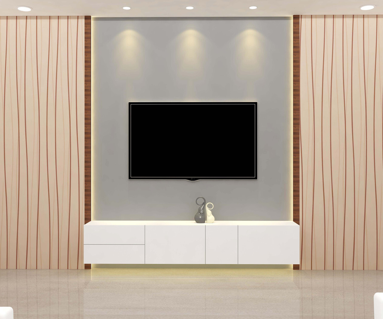 Always ensure that your TV cabinet is wider than your television and proportionate to the wall area. This prevents overcrowding and enhances overall layout harmony.